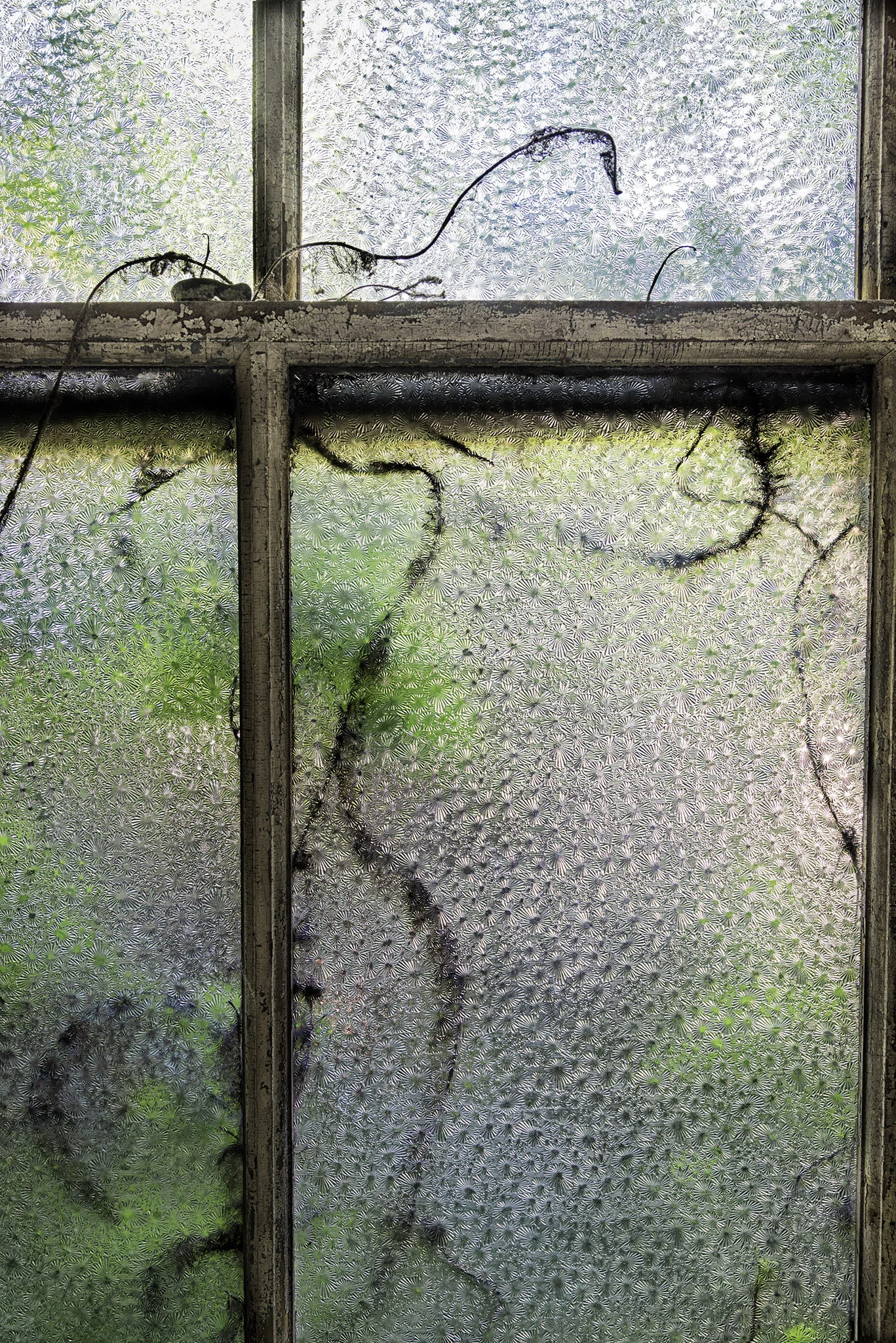 Window With Patterned Glass And Vines
